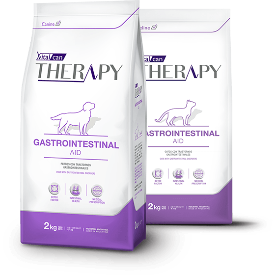 VITALCAN THERAPY GASTROINTESTINAL AID es un alimento de prescripción para perros y gatos de todas las edades con trastornos gastrointestinales. Contribuye al manejo nutricional del animal con síndrome de malabsorción, malasimilación, diarreas, vómitos, colitis, entre otros.