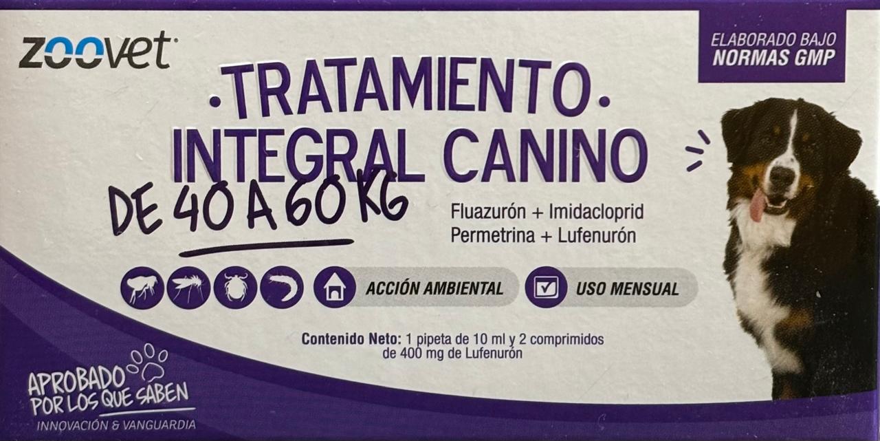 Pulguicida y garrapaticida. Repelente de moscas y mosquitos. Aplicar una pipeta (vía tópica) y conjuntamente se administran 1 o 2 comprimidos (vía oral) de acuerdo al peso de cada animal. Intervalo entre dosis: Cada 30 días. Cajas individuales con pipeta y comprimido/s, según corresponda por kilaje.