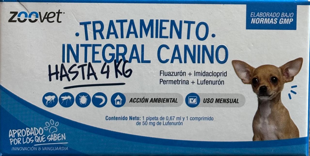 Pulguicida y garrapaticida. Repelente de moscas y mosquitos. Aplicar una pipeta (vía tópica) y conjuntamente se administran 1 o 2 comprimidos (vía oral) de acuerdo al peso de cada animal. Intervalo entre dosis: Cada 30 días. Cajas individuales con pipeta y comprimido/s, según corresponda por kilaje.
